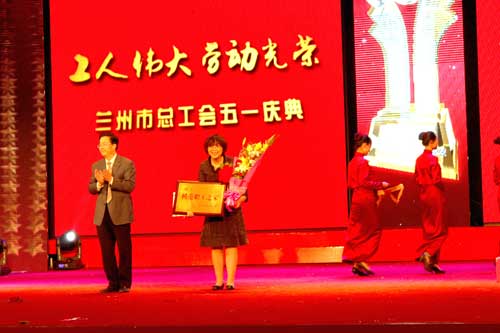 2012年4月26日,由蘭州市總工會(huì)組辦的首屆“五一慶典頒獎(jiǎng)典禮”在甘肅省政府禮堂隆重召開(kāi), 奇正藏藥榮獲 “全國(guó)模范職工之家”的稱(chēng)號(hào),由甘肅奇正藏藥有限公司總經(jīng)理馬蓉女士代表公司接受了嘉獎(jiǎng),公司選派20名員工代表組成方陣,參加了本次頒獎(jiǎng)典禮。蘭州市100余名勞動(dòng)模范,及60多家企業(yè)受到表彰。