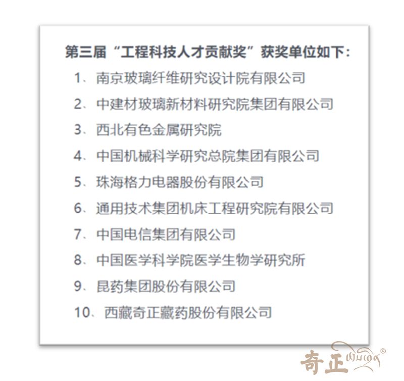 近日,第三屆中華國際科學(xué)交流基金會(huì)“工程科技人才貢獻(xiàn)獎(jiǎng)”獲獎(jiǎng)名單揭曉,奇正藏藥榮譽(yù)上榜。