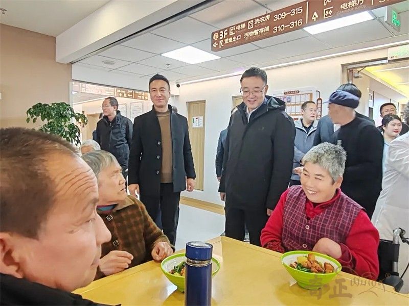 調研過程正趕上長者們的用餐時間,領導們步入用餐區(qū),溫馨愉悅的氛圍撲面而來,老人們圍坐餐桌旁,飯菜熱氣騰騰,營養(yǎng)搭配豐富。各級領導與老人們紛紛交流,關切詢問飯菜是否可口以及日常生活情況,茍廳長認真查看了奇正康養(yǎng)在照護方面采取的詳細舉措,了解護理人員對于長者的“九防”和“五常”管理理念,詳細詢問長者離院管理等方面的管理措施。同時,對于康養(yǎng)院照護工作中開展的培訓、演練、長者照護等日常工作給予了高度肯定。