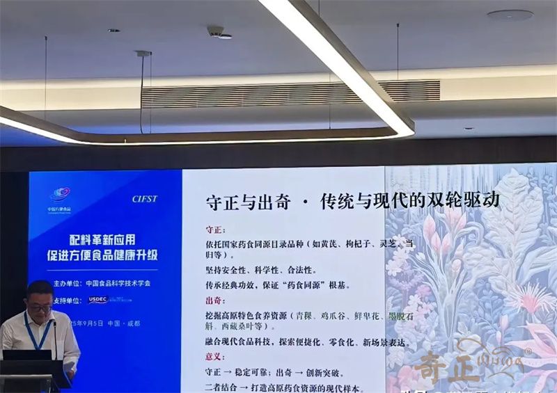 近日,由中國(guó)食品科學(xué)技術(shù)學(xué)會(huì)(CIFST)主辦的第二十五屆中國(guó)方便食品大會(huì)在四川成都召開(kāi)。本屆大會(huì)以“韌性成長(zhǎng) 向新而行”為主題,通過(guò)權(quán)威報(bào)告、行業(yè)對(duì)話、創(chuàng)新展示等不同維度,全面解碼方便食品產(chǎn)業(yè)高質(zhì)量發(fā)展的新趨勢(shì)、新動(dòng)能與新路徑。奇正青稞作為青稞產(chǎn)業(yè)龍頭企業(yè),攜旗下產(chǎn)品參會(huì),奇正集團(tuán)總經(jīng)理、奇正青稞董事長(zhǎng)程若瓊做了題為《 守正出奇--以新質(zhì)生產(chǎn)力開(kāi)拓高原的藥食寶藏 》為主題的專題報(bào)告。