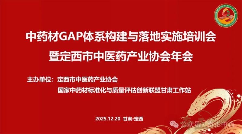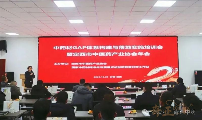2025年12月20日,“中藥材GAP體系構建與落地實施培訓會暨定西市中醫(yī)藥產業(yè)協(xié)會年會”在甘肅省定西市隴西縣成功舉辦。會議由定西市中醫(yī)藥產業(yè)協(xié)會與國家中藥材標準化與質量評估創(chuàng)新聯(lián)盟甘肅工作站聯(lián)合主辦,隴西奇正藥材有限責任公司、甘肅渭水源藥業(yè)科技有限公司、甘肅隴萃源百草中藥材有限責任公司共同協(xié)辦。來自行業(yè)協(xié)會、生產企業(yè)、種植基地、科研院所以及政府相關部門的百余位代表齊聚一堂,共同探討新版GAP標準的落地實踐與產業(yè)高質量發(fā)展路徑。